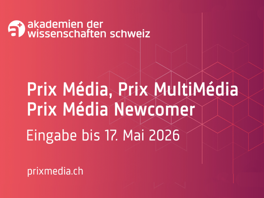 Die Akademien der Wissenschaften Schweiz (a+) würdigen mit den Prix Média-Preisen exzellente journalistische Beiträge aus der Wissenschaft und Forschung. Bewerbungen für alle drei Preise – Prix Média, Prix MultiMédia und Prix Média Newcomer – können bis zum 17. Mai 2026 eingereicht werden.