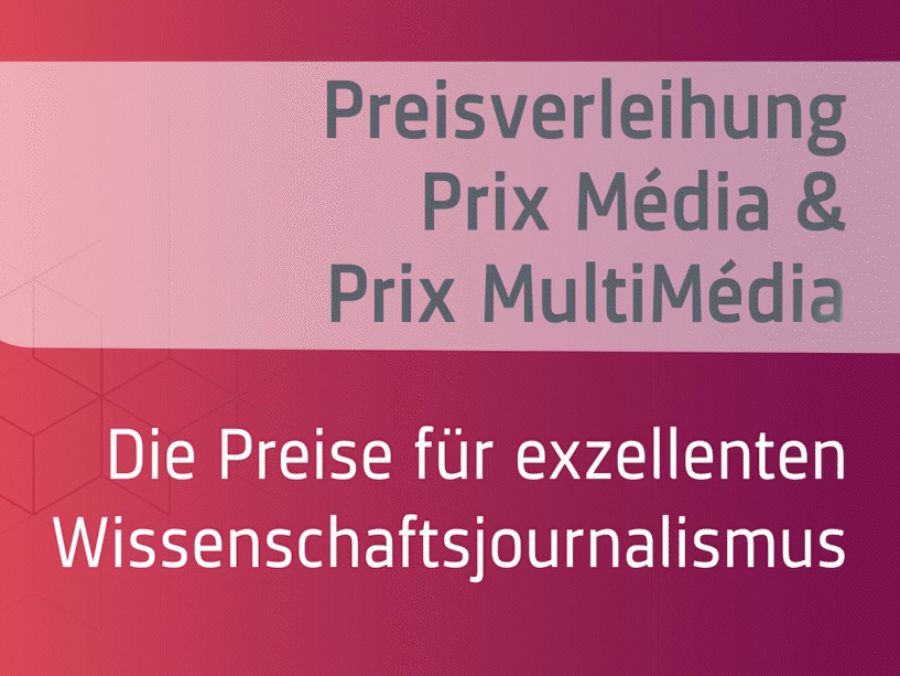 Lesen SchliessenWissenschaftsjournalismus soll verständlich, fundiert und relevant für die Gesellschaft sein. Mit dem Prix Média zeichnen die Akademien der Wissenschaften Schweiz (a+) herausragende Beiträge aus und fördern mit dem Prix Média Newcomer gezielt den journalistischen Nachwuchs. Alle Interessierten können beim Public Voting mitmachen und an der Preisverleihung teilnehmen.