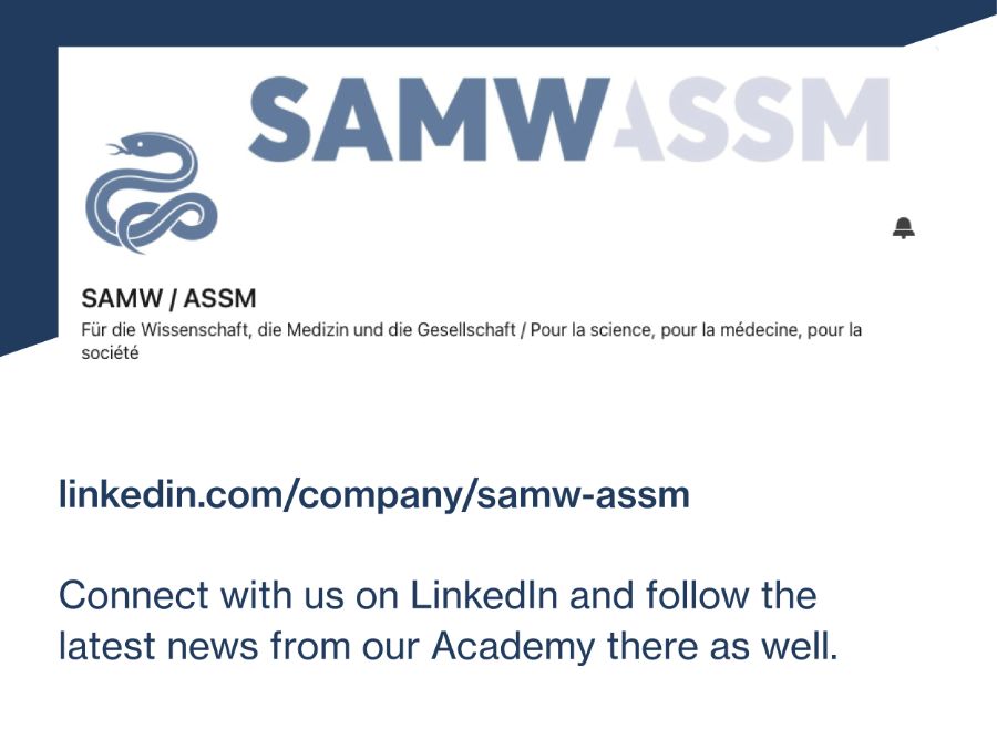Read more CloseThe SAMS has long been committed to the sustainable development of the Swiss health system. Within this context, the Academy is organizing a symposium on 24 September 2026 at the Eventforum Bern, focusing on the choices our society will have to make in the near future regarding our health system in order to address the growing human, financial, and environmental constraints.