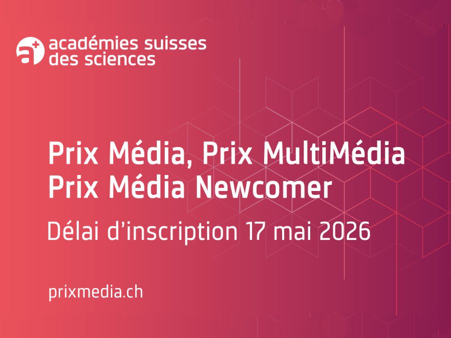 Lire FermerLes Académies suisses des sciences (a+) entendent soutenir un journalisme scientifique de qualité en décernant trois Prix Média pour d’excellentes contributions dans ce domaine. Les candidatures pour les Prix Média, MultiMédia et Média Newcomer – sont ouvertes jusqu’au 17 mai 2026.