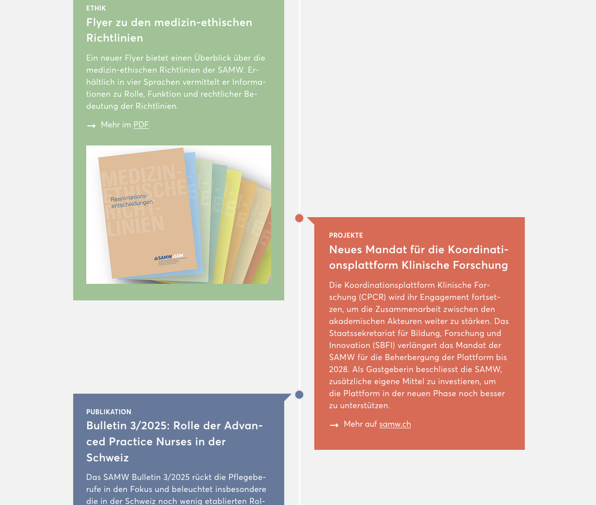 Die SAMW hat ihre Tätigkeit in den Kernbereichen kontinuierlich fortgeführt und fokussierte dabei insbesondere auf die interprofessionelle Zusammenarbeit, die Einbindung von Patientinnen, Patienten und Öffentlichkeit sowie auf zentrale Fragen zur Zukunft des Gesundheitssystems.